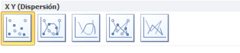 GRÁFICOS DE TIPO XY (Dispersión)Se pueden trazar datos organizados. Muestran la relación entre los valores numéricos de varias series de datos o trazan dos grupos de números como una serie de coordenadas XY.Tiene dos ejes de valores y muestra un conjunto de datos numéricos en el eje horizontal (eje X) y otro en el vertical (Y). Combina estos valores en puntos de datos únicos y los muestra en intervalos irregulares o agrupaciones. Se utilizan en general para comparar valores numéricos.
