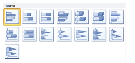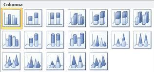 :Permite datos que se organizan en columnas o filas de una hoja de cálculo. Es útil para mostrar cambios de datos en un período de tiempo o para ilustrar comparaciones entre elementos. En los gráficos de columnas, las categorías normalmente se organizan en el eje horizontal y los valores en el eje vertical.