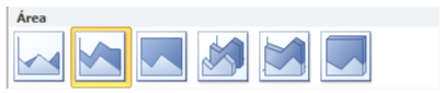 Caption: : Gráficos de área: En un gráfico de área se pueden trazar datos que se organizan en columnas o filas de una hoja de cálculo. Los gráficos de área destacan la magnitud del cambio en el tiempo y se pueden utilizar para enfocar la atención en el valor total en una tendencia. Por ejemplo, se pueden trazar los datos que representan el beneficio en el tiempo en un gráfico de área para destacar el beneficio total. Al mostrar la suma de los valores trazados, un gráfico de área también muestra la relación de las partes con un todo.