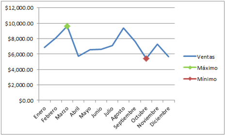 En un gráfico de líneas se trazan datos que se organizan en filas y columnas, pero en forma lineal para mostrar continuidad de tiempo, establecidos frente a una escala común para mostrar tendencias en datos a intervalos iguales.Los datos de categoría se distribuyen uniformemente en el eje horizontal, y todos los valores uniformemente en el eje vertical.