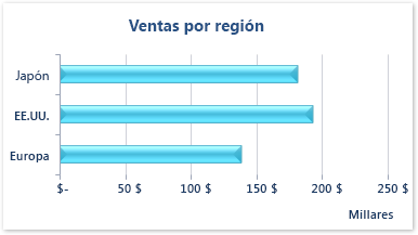 En un gráfico de barras se pueden trazar datos que se organizan en columnas o filas de una hoja de cálculo. Los gráficos de barras muestran comparaciones entre elementos individuales.