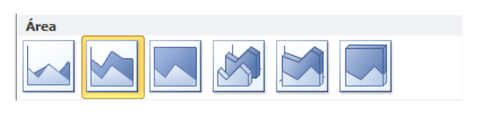 Los gráficos de área destacan la magnitud del cambio en el tiempo y se pueden utilizar para enfocar la atención en el valor total de una tendencia..
