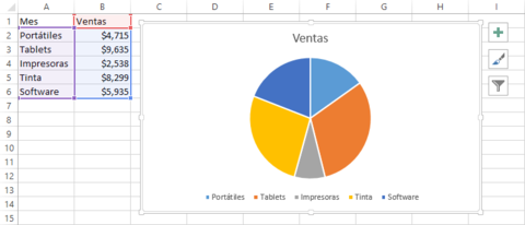 pulsa con el botón derecho sobre el gráfico para obtener el menú contextual.Acceso a los distintos objetos del gráfico: Si pulsas sobre el gráfico y después sobre sus componentes, podrás ir cambiando uno por uno los