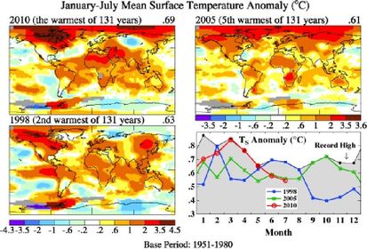 La probabilidad de que una ola de calor en Europa similar a la de 2010 vuelva a ocurrir es "muy pequeña hasta la mitad del siglo XXI". Sin embargo, "el hecho de que sea una situación muy poco probable no quiere decir que no pueda suceder en breve. En la segunda mitad, el riesgo aumentará de manera rápida como consecuencia, sobre todo, del calentamiento global y del aumento de la concentración de gases de efecto invernadero.