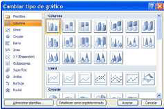 es la posibilidad de a todas las figuras el aspecto de cada columna. Ya hemos visto el cambio de color o textura. También puedeselegir otra forma geométrica, como pirámides, conos.Para lograrlo basta usar el botón derecho sobre el gráficoy elegir Cambiar el tipo de gráfico…y de esa formas.