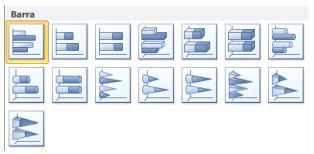 organizan en columnas o filas de una hoja de cálculo. Muestran comparaciones entre elementos individuales.Son muy parecidos a los de columnas, sin embargo varían en su orientación.