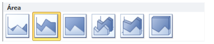 Los gráficos de área destacan la magnitud del cambio en el tiempo y se pueden utilizar para enfocar la atención en el valor total en una tendencia. Por ejemplo, se pueden trazar los datos que representan el beneficio en el tiempo en un gráfico de área para destacar el beneficio total. Al mostrar la suma de los valores trazados, un gráfico de área también muestra la relación de las partes con un todo.