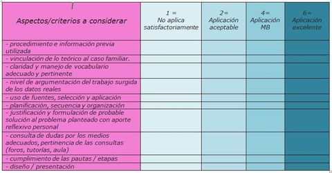 tabla / rúbrica con los aspectos a considerar, escalas y descripción de las mismas. Utiliza la misma como lista de cotejo y/o chequeo de los criterios a tener en cuenta durante la realización.