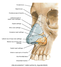Son dos estructuras, derecha e izquierda, ubicadas por encima de la cavidad bucal. Están separadas entre sí por un tabique nasal de tejido cartilaginoso. En la parte anterior de cada cavidad se ubican las narinas, orificios de entrada del sistema respiratorio. La parte posterior se comunica con la faringe a través de las coanas.