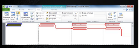 La vista Diagrama de red muestra las dependencias de tareas entre las tarea del proyecto mediante cuadros o nodos que están vinculados con líneas. Puede ajustar el diseño de los cuadros, el estilo de las líneas de vínculos y la información que se muestra en la vista.TAREA DE RESUEMN TAREAS CRITICASRECTAGULOS TAREAS SECUNDARIAS