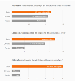 Safari es un navegador hecho para dispositivos Apple por lo cual viene como predeterminada en sus dispositivos. cuenta con un nivel de seguridad alto, con una interfaz facil de usar, aunque sus capacidades se ven reducidas al ser utilizado en otros dispositivos ya que al ser diseñado para los dispositivos (apple principalmente mac) sus capacidades son mejores con con este desde la velocidad de las descargas hasta los fps. este tambien tiene la ventaja de un navegador privado modo lista lectura compartir enlaces autorrellleno y quitar distractores