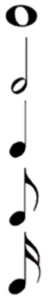 El orden de duración de las figuras es:- Redonda- Blanca- Negra- Corchea- Semicorchea