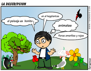 "Discurso oral o escrito en el que se explica cómo es una cosa, una persona o un lugar para ofrecer una imagen o una idea completa de ellos.