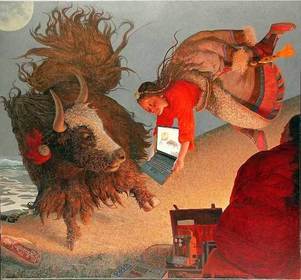 La verticalidad física y psicologica del hombre se contrapone a la tendencia horizontal del entorno, el manejo del centro de gravedad del objeto representado depende de los elementos que rodeen al objeto central de la pintura.