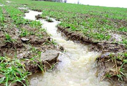 a través del riego y el agua de lluvia hacia los cauces de los ríos,