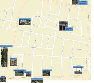 Caption: : Los puntos marcados con verde en el mapa son los lugares y puntos mas representativos de la zona