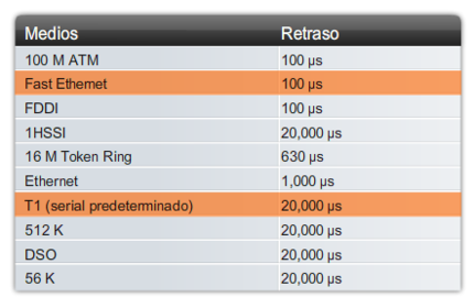El retardo es la medida del tiempo que necesita un paquete para atravesar una ruta. La métrica del retardo (DLY) es un valor estático determinado en función del tipo de enlace al cual se encuentra conectada la interfaz y se expresa en microsegundos.