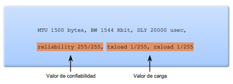 La carga (load) refleja la cantidad de tráfico que utiliza el enlace. Al igual que la confiabilidad, la carga se mide dinámicamente con un valor de entre 0 y 255. Similar a la confiabilidad, la carga se expresa con una fracción de 255. Sin embargo, en este caso se prefiere un valor de carga menor porque indica menos carga en el enlace. Por lo tanto, 1/255 sería un enlace de carga mínima. 40/255 es un enlace con 16% de capacidad y 255/255 sería un enlace saturado al 100%