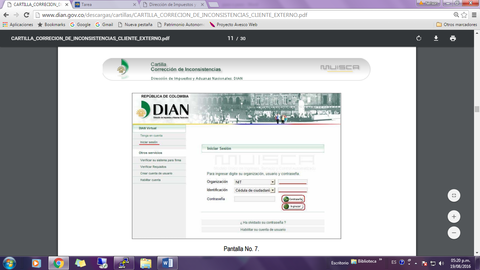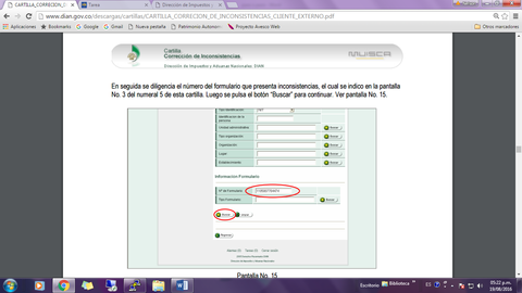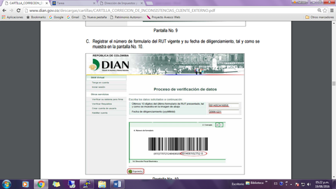 Caption: : Registrar el número de formulario del RUT vigente y su fecha de diligenciamiento, tal y como se muestra en la pantalla