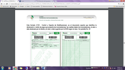Caption: : Este formato (1103 - Control y Soporte de Modificaciones), es el documento soporte que identifica la declaración o recibo de pago que presenta las inconsistencias, las casillas objeto de inconsistencias, el valor o dato declarado por el cliente y el valor o dato sugerido por la DIAN según el caso.