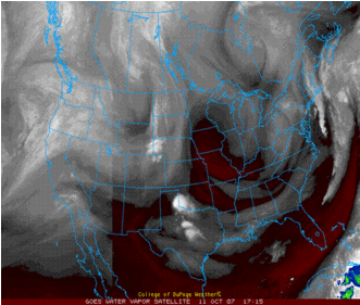 humedad.)Áreas más brillantes en las imágenes representan áreas de mayor humedad en la parte media de la atmósfera.Áreas más oscuras representan áreas más secas o con poca humedad en la parte media de la atmósfera.