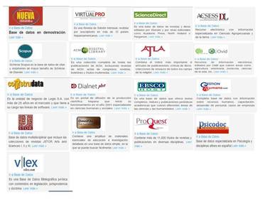 En estas podemos consultar la Guía de Acceso a las Bases de Datos en Línea.Estas bases de datos suelen tener formato electrónico y se consultan a través de Internet. Contienen citas bibliográficas, referencias, abstractas (resumen de una publicación científica) y, a menudo, el texto completo de los contenidos indexados, o enlaces al texto completo.