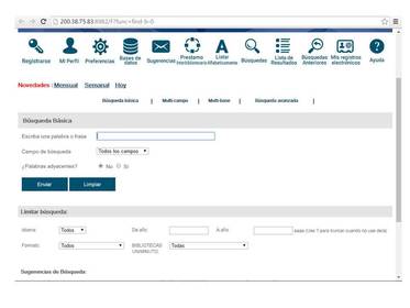 En este tipo de catalogo primero debemos hacer un registro para poder acceder a esta plataforma.Nos permite ver los libros que pueden estar disponibles para así hacer la reserva y luego ir por ellos en físico dependiendo en la sede que estén disponibles.