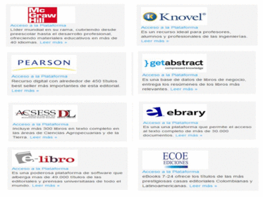 Plataforma de libros electrónicos educativos son recursos digitales en versión electrónica o digital de un libro. En el encontramos las editoriales relacionadas.
