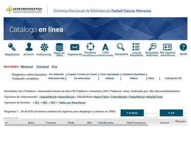 El Sistema Nacional de Bibliotecas Rafael García Herreros, tiene como misión brindar a la comunidad Uniminuto recursos y servicios que respondan a las necesidades actuales de información, así mismo servir de apoyo al desarrollo académico e investigativo, a través de tecnologías de información avanzadas, colecciones bibliográficas y recursos físicos de calidad que permitan el crecimiento y fortalecimiento de la comunidad académica. Los recursos disponibles para la consulta de información académica desde el sistema de bibliotecas Uniminuto son los siguientes:.