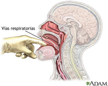 Si la persona vomita, despeje sus vías respiratorias. Envuelva un pedazo de tela alrededor de los dedos antes de limpiar la boca y la garganta.