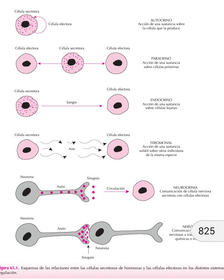 Las señales electroquímicas del sistema nervioso circulan por los nervios, que forman circuitos de conexión.Las hormonas se vierten a la circulación sanguínea o al líquido intersticial por donde alcanzan sus órganos diana correspondientes, donde ejercen sus acciones.Para ejercer éstas acciones, existen sistemas:autocrinosparacrinosendócrinos
