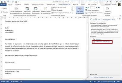 10.- DAMOS CLIC EN LA OPCIÓN EDITAR CARTA INDIVIDUALES. NOS MOSTRARA UNA VENTANA LE DAMOS CLIC EN TODOS Y LE DAMOS ACEPTAR. DEBEMOS VER EL ARCHIVO CON TODAS LAS CARTAS, LO GUARDAMOS Y LISTO.