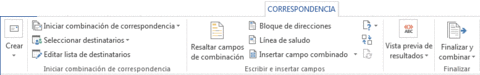 Para rectificar un documento combinado o utilizarlo para enviar nuevas cartas podemos abrir el panel de tareas y utilizar los pasos del asistente que ya hemos visto, pero también podemos utilizar los botones de la pestaña Correspondencia.
