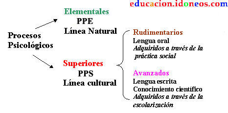 Los PPE son comunes al hombre y a otros animales superiores, y se corresponden con la línea natural de desarrollo. Ejemplos de PPE son la memoria y la atención. Los PPS, que se caracterizan por ser específicamente humanos se desarrollan en los niños a partir de la incorporación de la cultura. Desde este punto de vista, las interacciones sociales y las formas de mediación semiótica son la unidad de análisis de base sobre la cual se explican los procesos de subjetivación individual. Diferentes experiencias culturales, pueden producir diversos procesos de desarrollo.