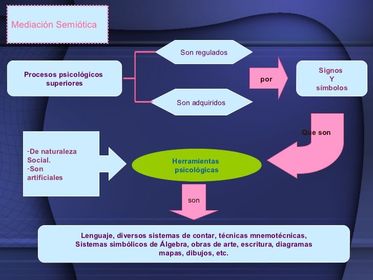 La mediación semiótica es uno de los aportes más importantes de la teoría Vigotskiana, ya que por medio de esta mediación el sujeto puede establecer una relación con el contexto y posteriormente consigo mismo, esta relación esta mediada por el lenguaje el cual tiene dos funciones principales: 1. de pensamiento 2. de comunicación.