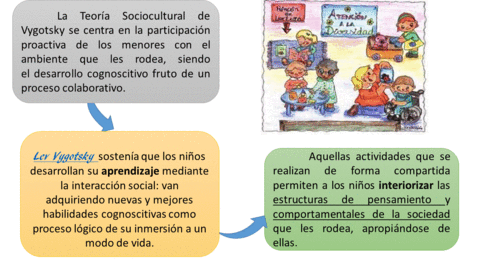 • El aprendizaje es un proceso activo basado en la convivencia, en la experiencia diaria de las actividades cotidianas. • Las actividades educativas deben fomentar las relaciones entre los miembros de una comunidad enfatizando las interacción entre maestro - alumno.Personalmente opino que el punto más relevante de esta teoría es la procuración de las ZDP preparando a los estudiantes para poder estar listos y enfrentar las nuevas situaciones, podrán estarlo con el apoyo de la mediación que a través de sus elementos se logran los aprendizajes reales convirtiéndolos así en la nueva estructura psicológica que da lugar a la interiorización.