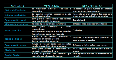 Es un instrumento muy utilizado que muestra los posibles resultados que se pueden conseguir, al seguir cursos alternativos de acción (estrategias) en diferentes circunstancias.