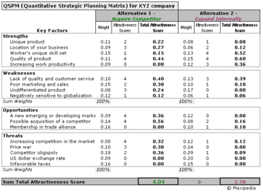 Es una herramienta de gestión usada para determinar qué objetivos estratégicos debe emprender uan compañia. Se divide en cuatro cuadrantes donde cada uno surgiere un diferente tipo o naturaleza de la estrategia:- Agresivo - Conservador- Defensivo- Competitivo