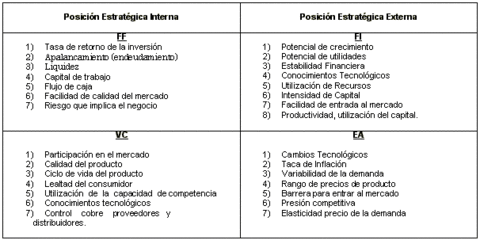 y externos (OA), creando una tabla donde a cada factor que tenga dentro