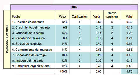 encuentra la empresa y las UEN se podrá determinar claramente los recursos con