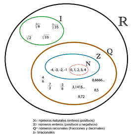 El conjunto de los números reales pertenece en matemáticas a la recta numérica que comprende a los números racionales y a los números irracionales.