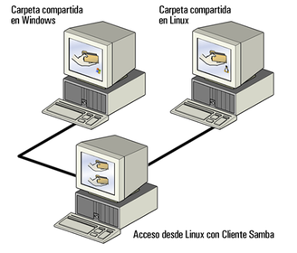Caption: : Samba son un conjunto de palicaciones para Linux. Basicamente Samba permite a PCs que utilizan Linux, conectarse a carpetas compartidas en Pcs con Windows y compartir carpetas como si de un sistema Windows se tratara.