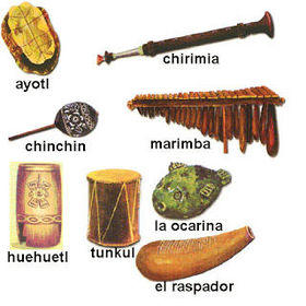 El Teponaztli. El Tlapitzalli. La Ocarina. El Tzicahastrli.El Atecocolli.