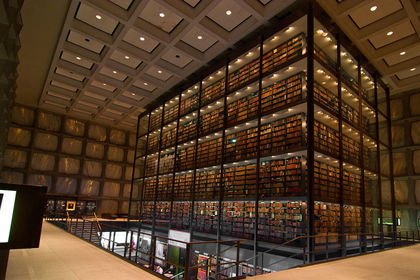 Biblioteca Beinecke para Libros Raros y Manuscritos – New Haven, EE.UUUn regalo de la familia Beinecke a la Universidad de Yale en 1963, este edificio sin ventanas tiene sus paredes hechas de mármol transluciente y fue specíficamente diseñado para preservar libros raros y manuscritos, como una de las 48 Biblias Gutenberg.