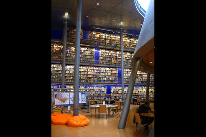 Delft, HolandaLa biblioteca de la Universidad de Tecnología de Delft fue diseñada por la firma de arquitectura Mecanoo para ser un “triángulo de grama y cristal.” El edificio culmina con un largo cono de cristal en el que hay cuatro salas de lectura, a las que se accede mediante escaleras en espiral.