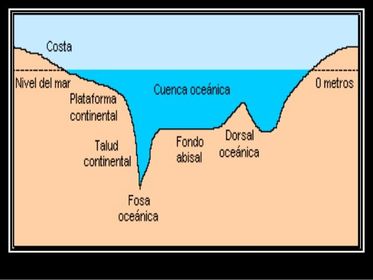 La fosa oceánica es el relieve submarino que alcanza mayores profundidades. Alrededor de 5000 metros partiendo del margen del talud continental. No se expone al sol, por lo que se entiende que posee muy bajas temperaturas.