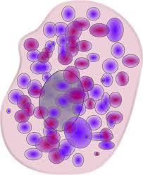 en el citoplasma de gránulos de diferentes tipos y tamaños