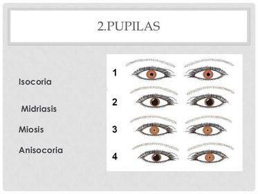 ISOCORIA: Pupilas de igul tamaño ANISOCORIA: Pupila de tamaño desigualMIDRIASIS: Pupilas