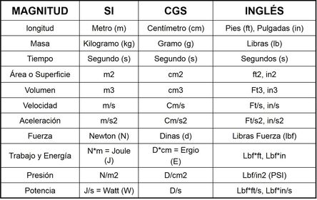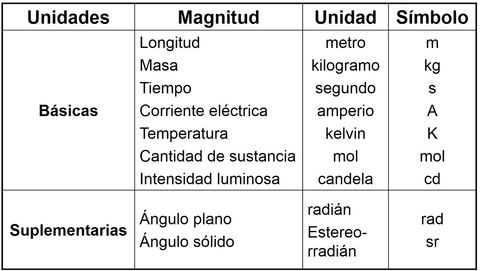 nombre y símbolo de algunas magnitudes fundamentales y derivadas en los tres