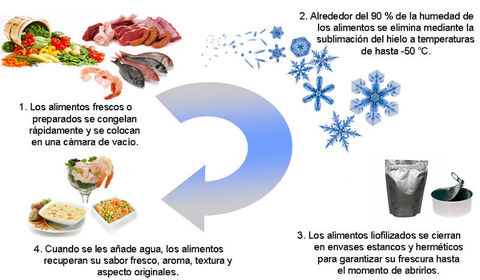 El proceso de liofilización era empleados por los Incas. El procedimiento ancestral consistía en dejar por la noche que los alimentos se congelasen por la acción del frío de los Andes y gracias a los primeros rayos de sol de la mañana y la baja presión atmosférica de las elevadas tierras andinas, se producía la sublimación del agua que se había congelado. Este proceso se conoció como liofilización natural.